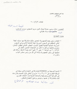 Invitation à participer à la deuxième Rencontre Euro-méditerranéenne des Familles de Disapur(e)s رسالة، 2 صفحة، جدول -