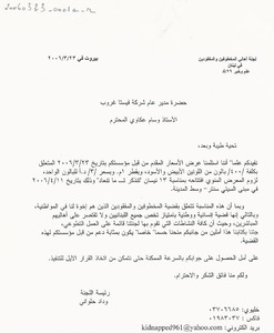 Demande de soutien financier pour l'organisation d'une exposition artistique رسالة، 1 صفحة -