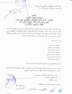 محضر اجتماع الهيئة الادارية لجمعية لجنة اهالي المخطوفين والمفقودين في لبنان تقرير، 3 صفحات -