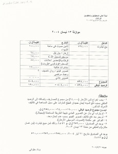 موازنة 13 نيسان، 2004 تقرير، 1 صفحة، جدول -