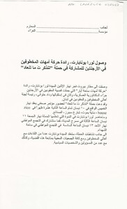 وصول لورا بونابارت رائدة حركة امهات المخطوفين في الارجنتين للمشاركة في حملة تنذكر ت ما تنعاد بيان، 1 صفحة -